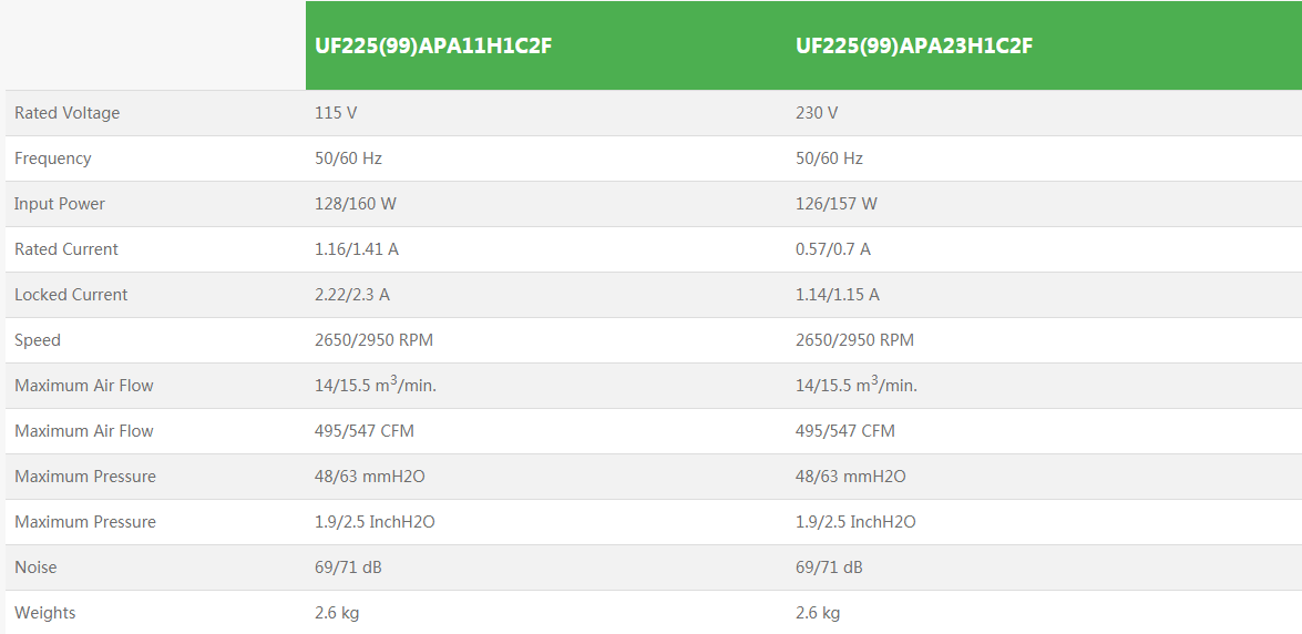 • UF225(99)APA全新原裝臺灣正品福佑小型離心風(fēng)機(jī)排煙機(jī)蝸殼注塑機(jī)變頻器散熱